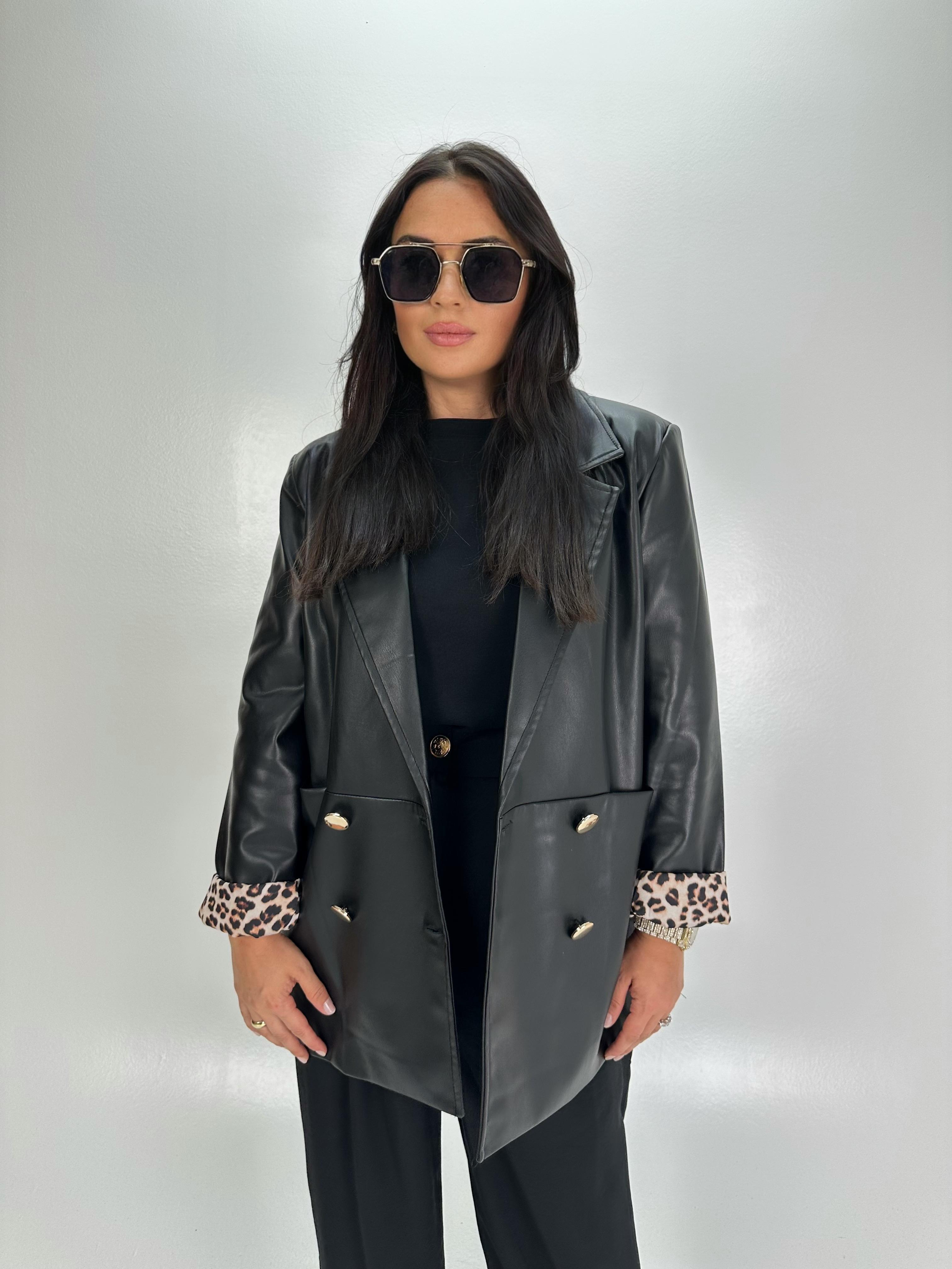 GOLD DÜĞME DETAYLI,ÖNDEN CEPLİ,ASTARLI,SİYAH DERİ CEKET