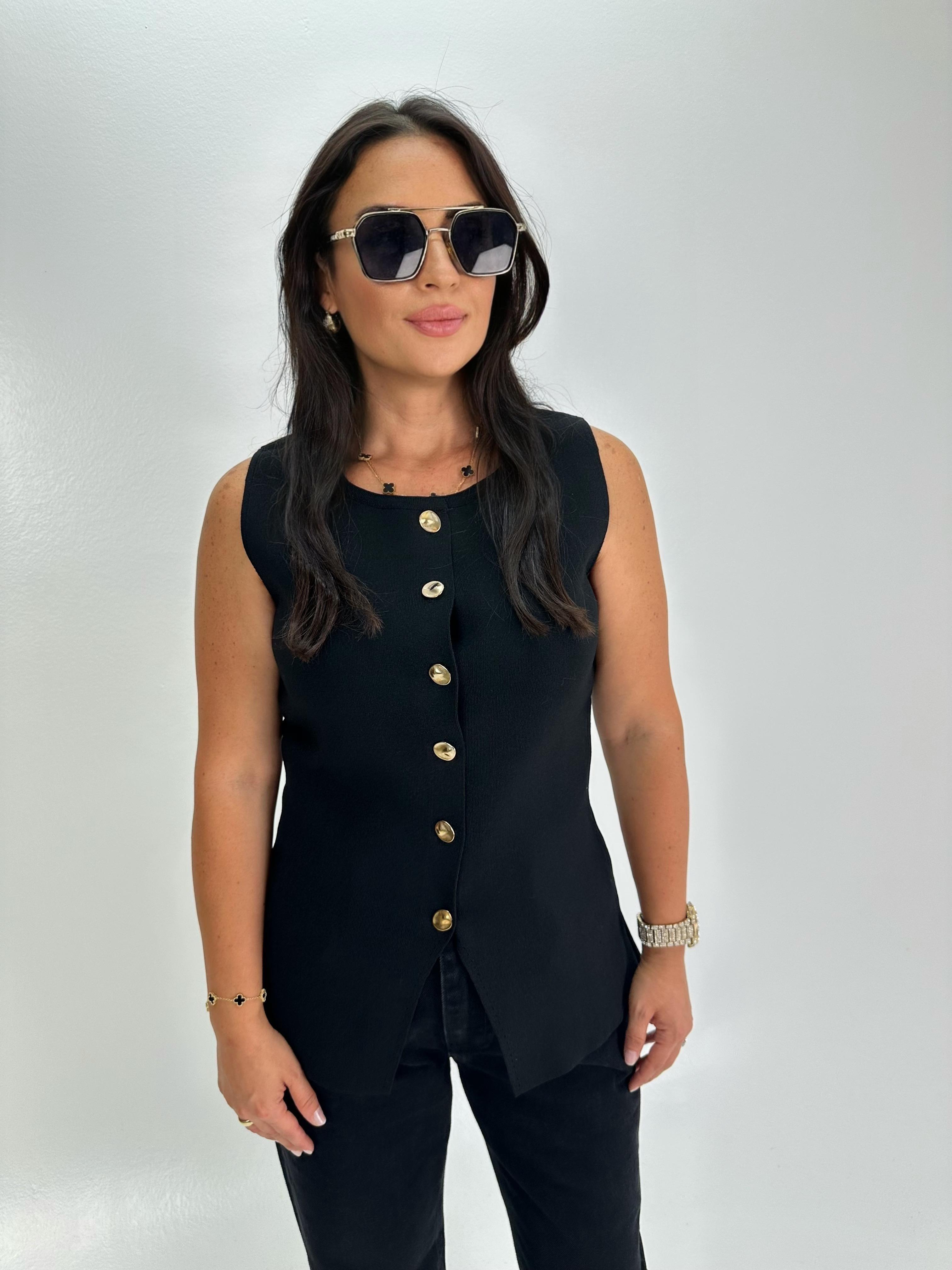 GOLD DÜĞMELİ SİYAH TRİKO YELEK