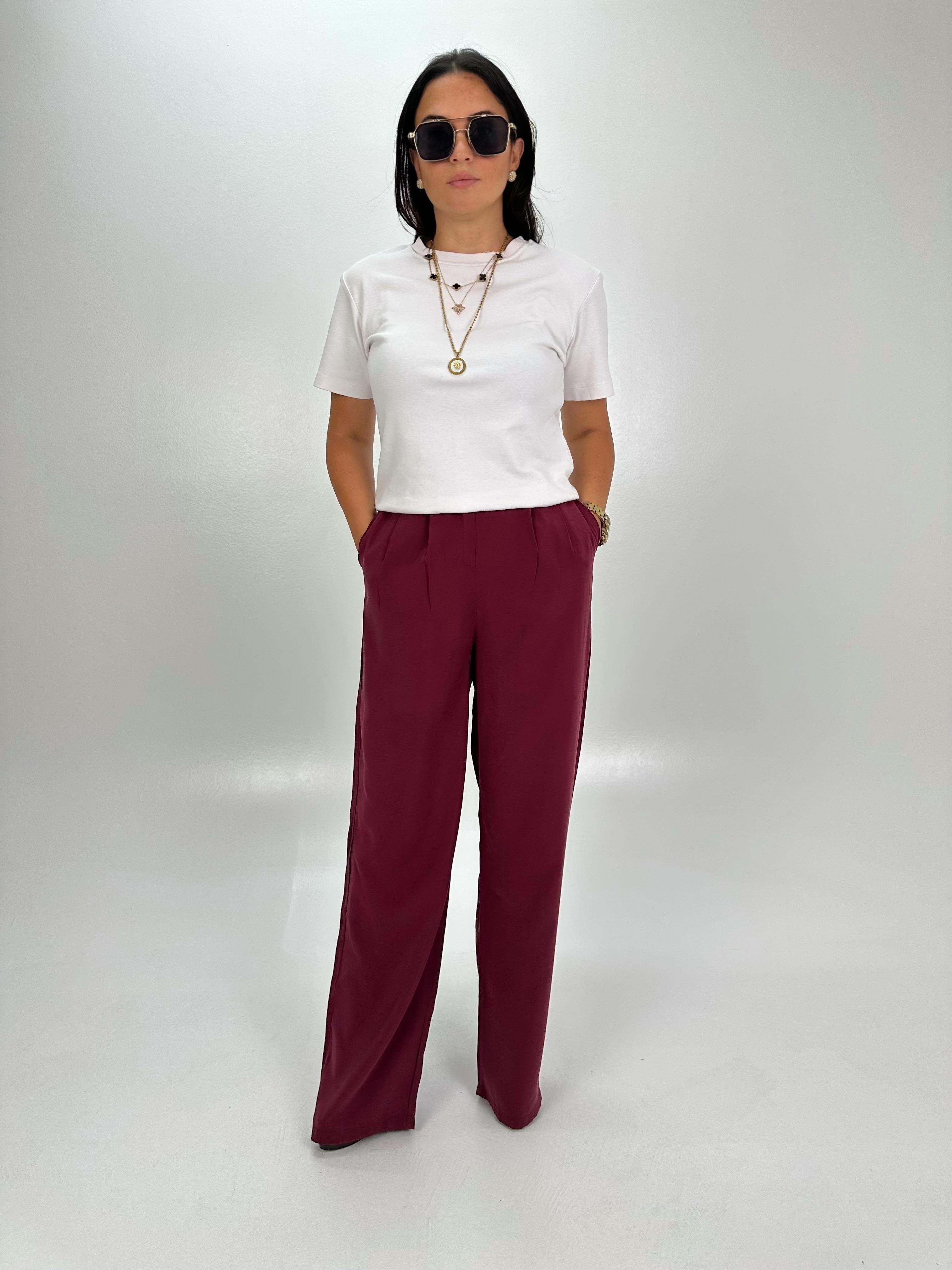MODAL,GOLD DÜĞME DETAYLI,YANDAN CEPLİ,BORDO PANTOLON