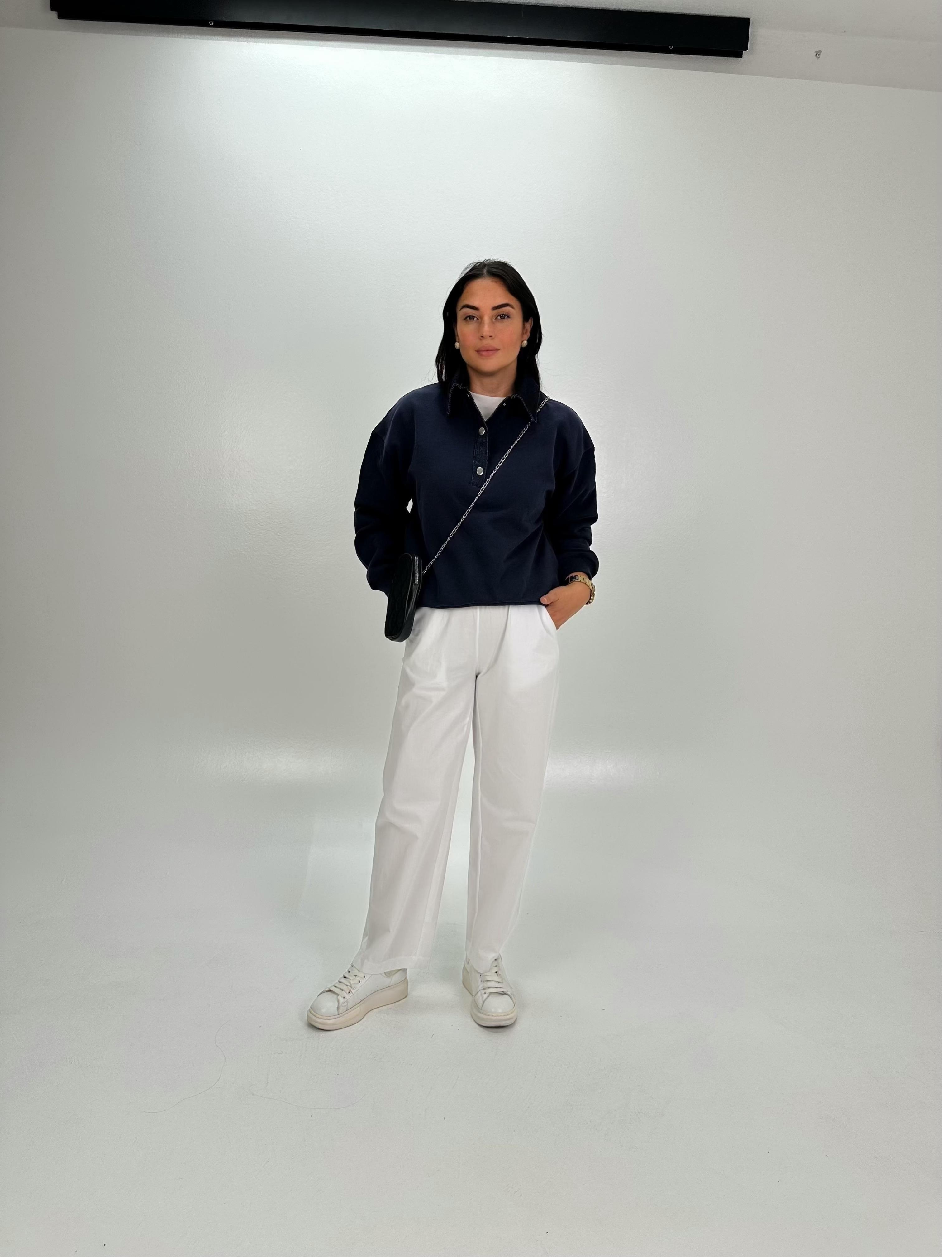 POLO YAKA,KOT DETAY YAKA,ÇITÇITLI SWEATSHİRT